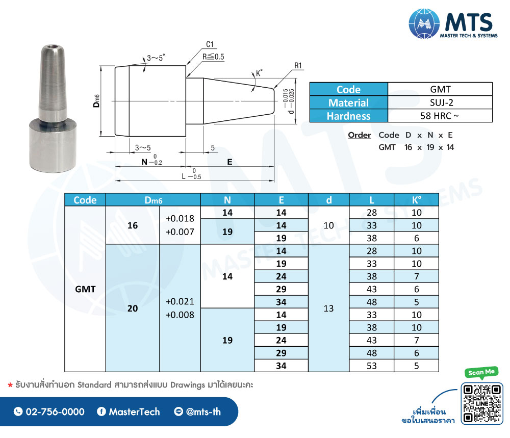 SKU : GMT | Material: SUJ-2 | Hardness: 58 HRC ~