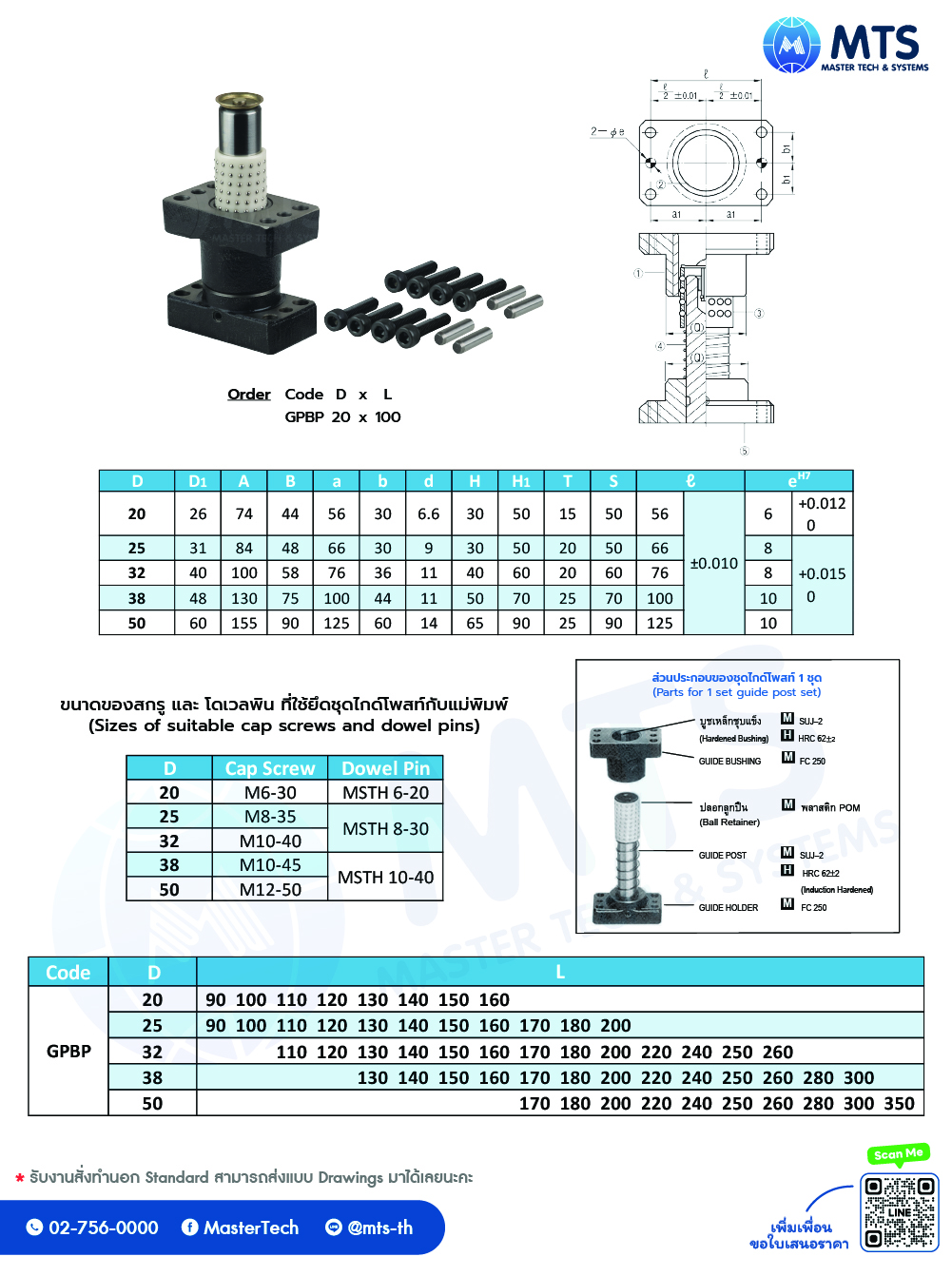 SKU : GPBP | ไกด์โพสท์แบบปลอกลูกปืนพลาสติก ฝาครอบลูกปืนเคลื่อนตาม ชนิดมีรูโดเวล